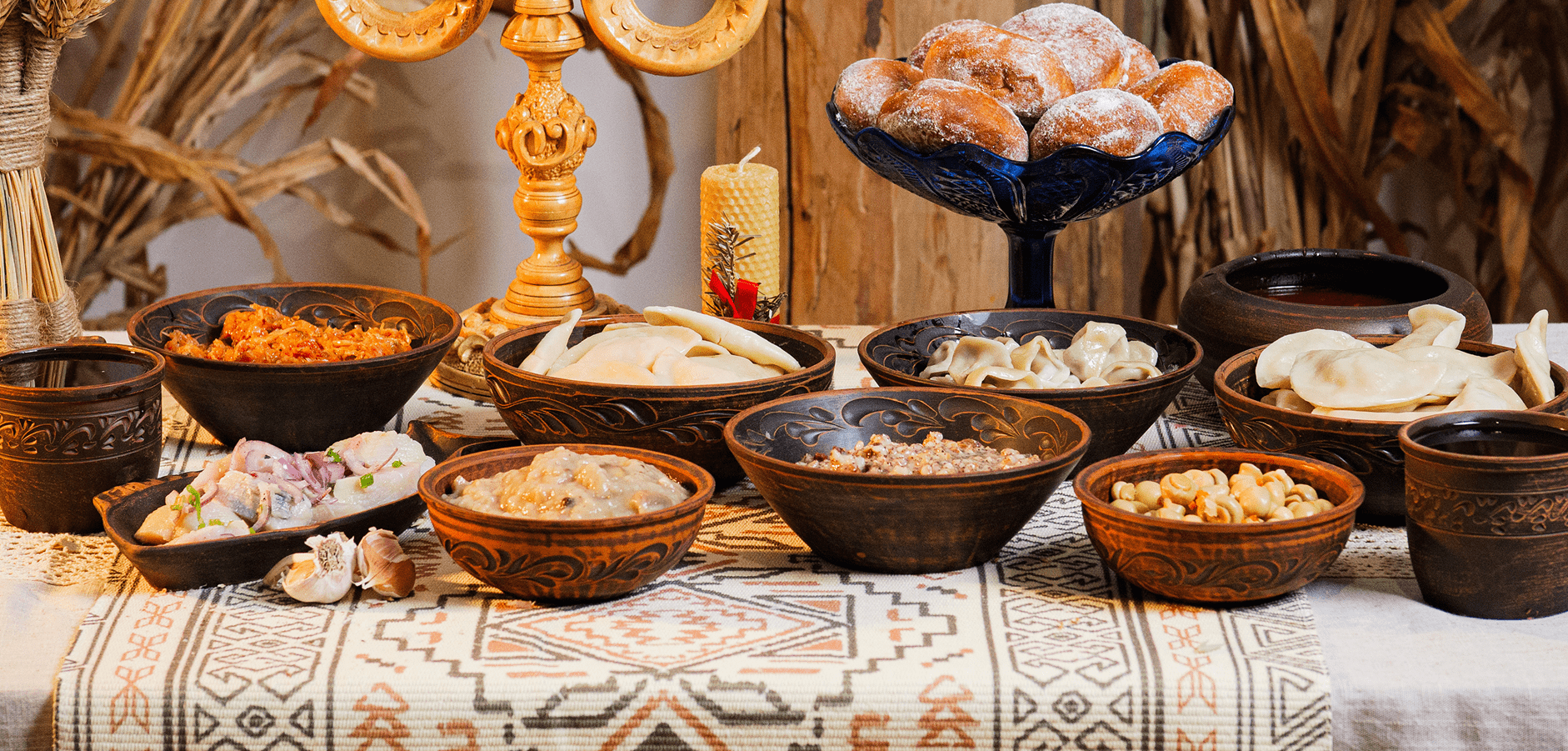 Давні традиційні прикраси для столу й дому робили зі звичайнісінької соломи й сіна. Прикрась стіл Дідухом і солом’яними іграшками, під скатертину поклади запашне сіно, а на чотири кути стола — часник, який проганяє злих духів. На столі також постав запалену свічку, в центрі — кутю, узвар та хліб, а потім додавай інші страви.
