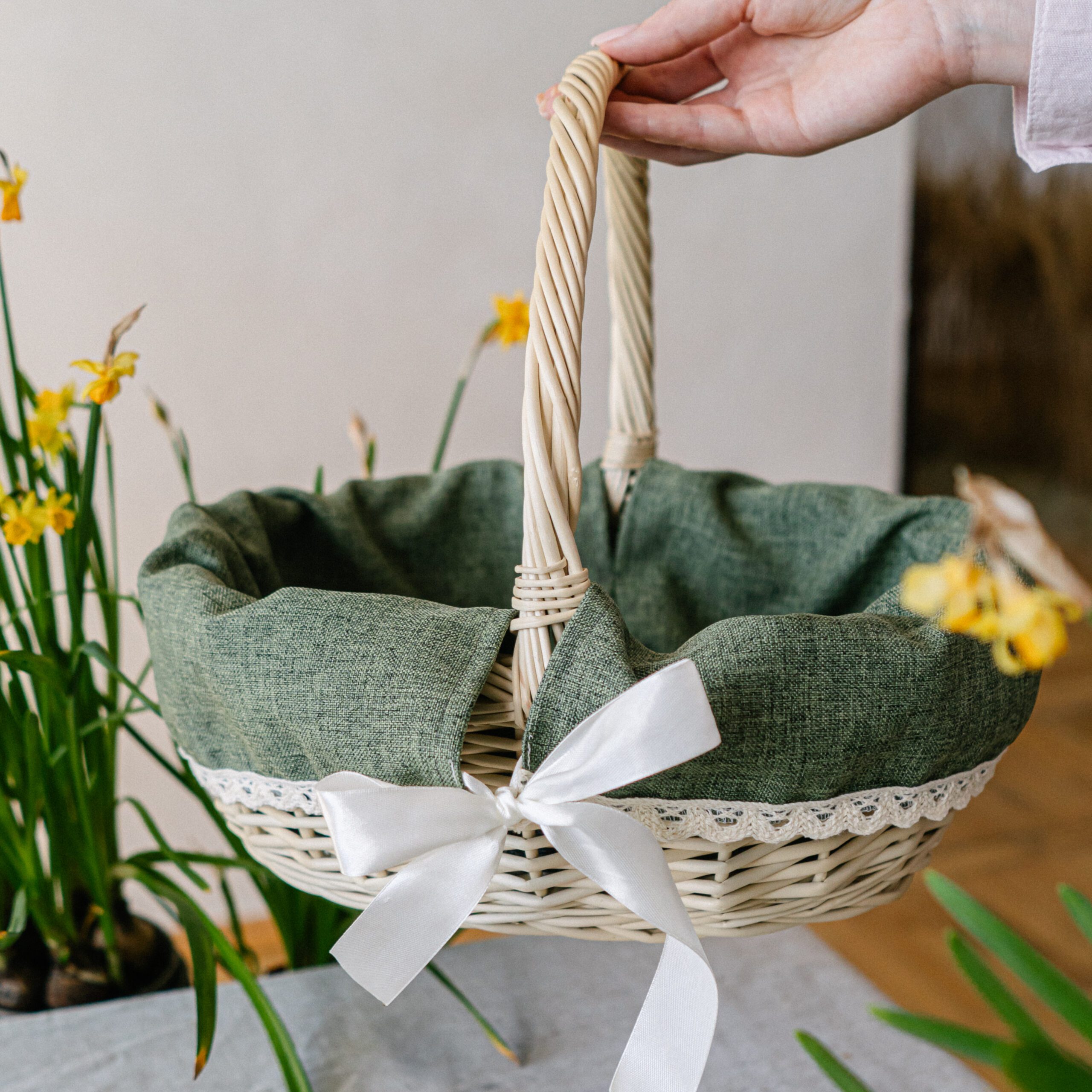 Плетений кошик, оздоблений натуральними матеріалами у традиційному стилі