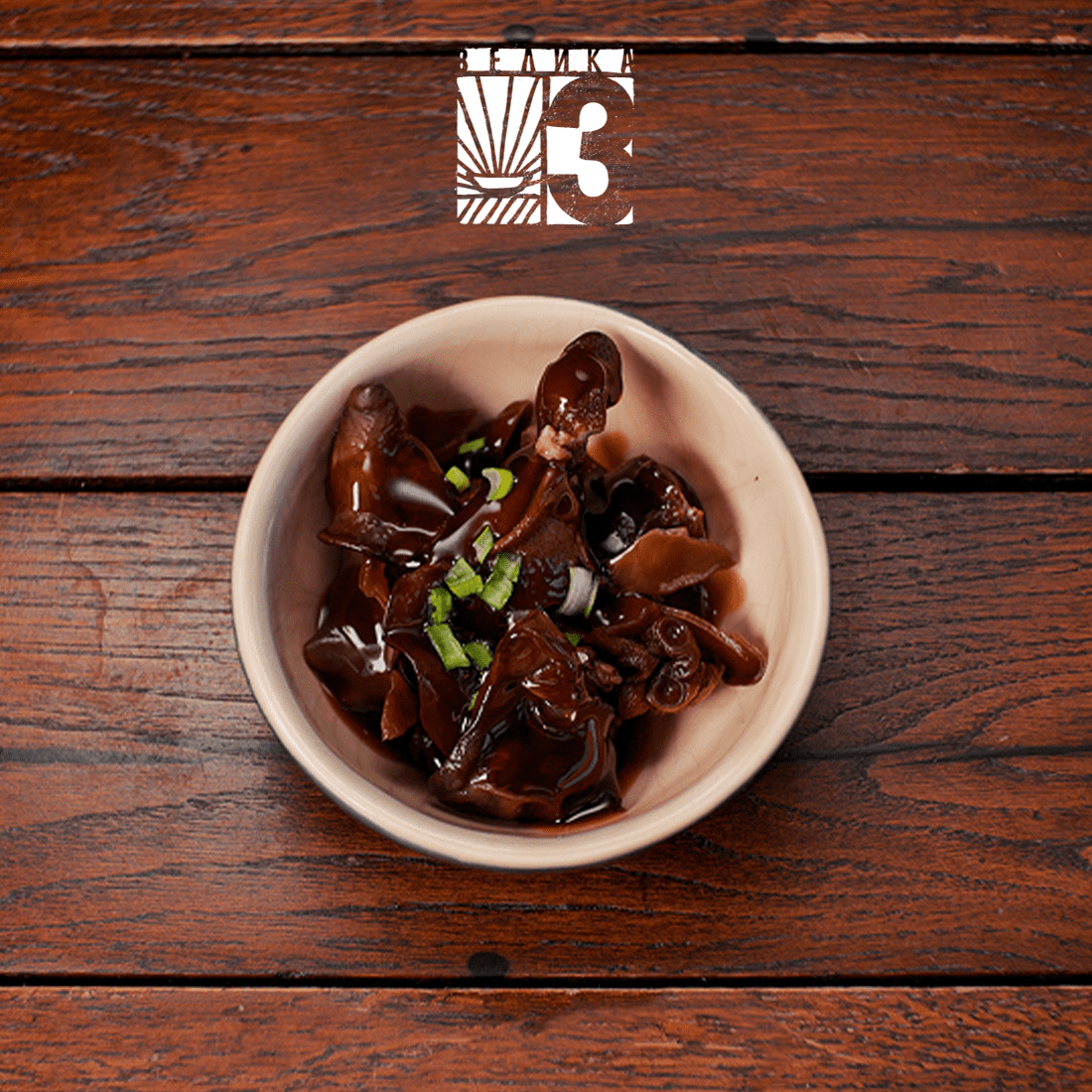 Гриби мариновані муер, зелена цибуля, кунжут, соус унагі, фреш лайму, мірін