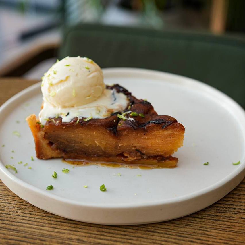 Яблучний пиріг з маслом ноазет та кулькою морозива пломбір.