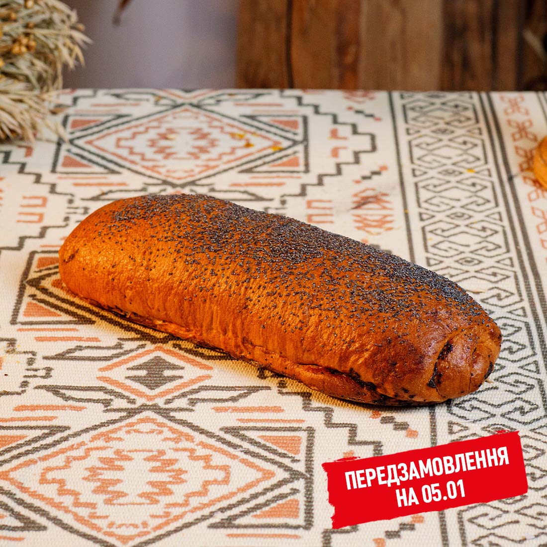 тісто дріжджове на основі молока та масла з начинкою – мак та варення з пелюсток троянди.