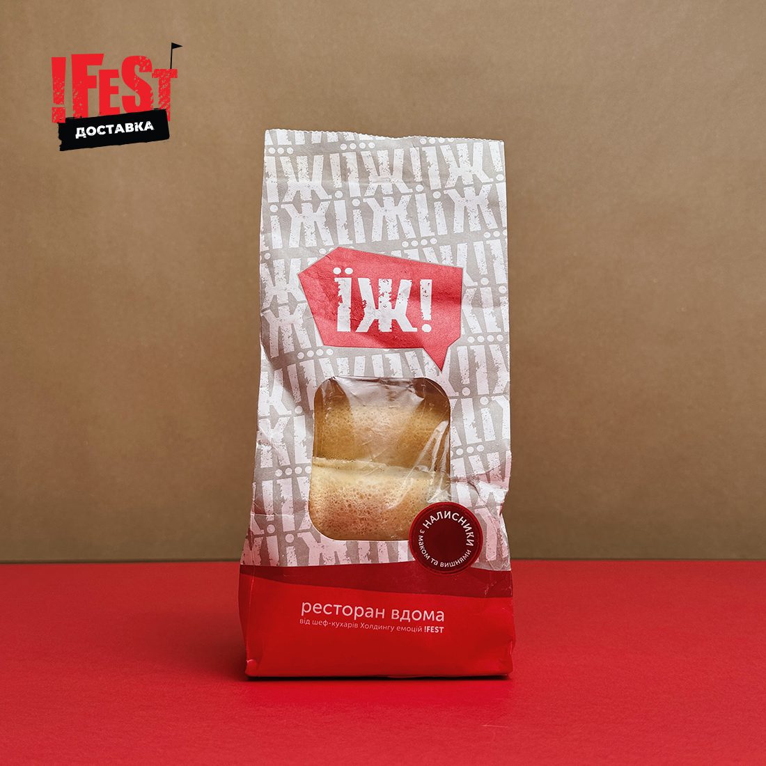Тісто млинцеве: борошно пшеничне вищого ґатунку, молоко коров’яче пастеризоване, вода питна, яйце куряче, олія соняшникова рафінована, сіль кухонна, цукор білий кристалічний. Начинка: вишня без кісточки, цукор білий кристалічний, пюре яблучне, мак, вода питна, патока крохмальна, пектин, сорбат калію.