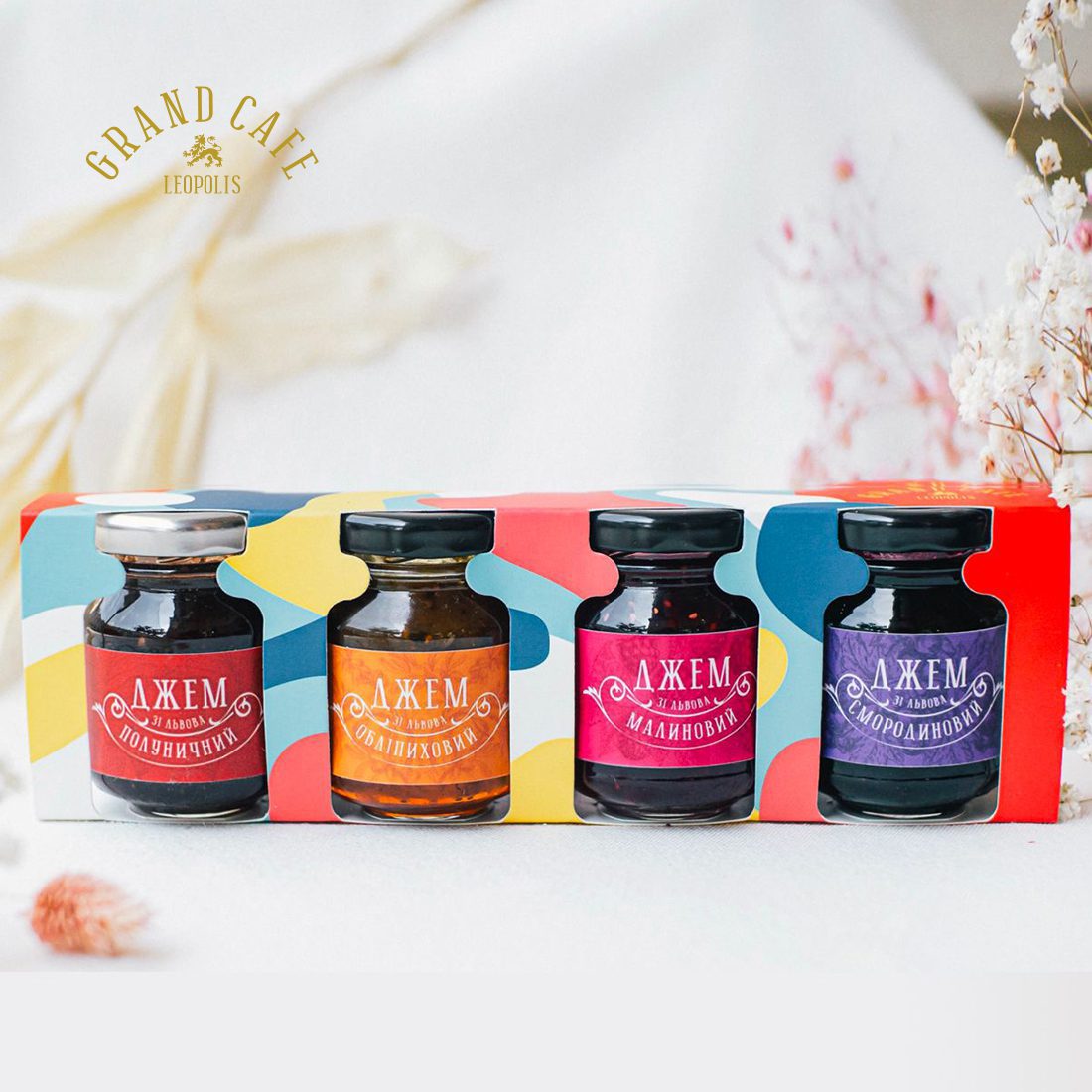Набір із джемів від Grand Cafe Leopolis поєднує в собі яскраву палітру смаків. Навіть примхливий поціновувач ласощів буде в захваті!