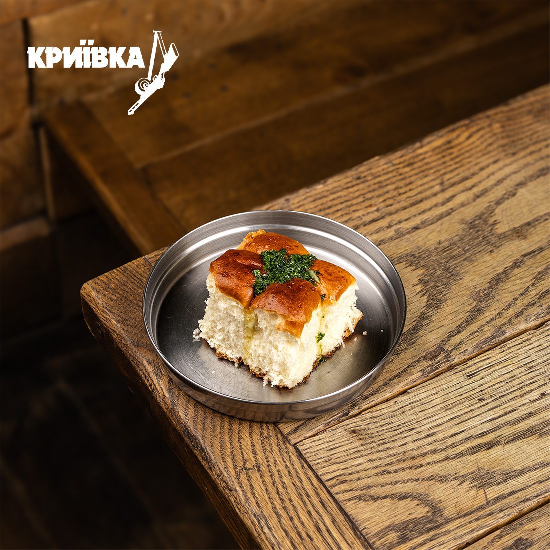 Класичні пампухи. Часниковий соус: олія, петрушка, часникова паста, сіль.