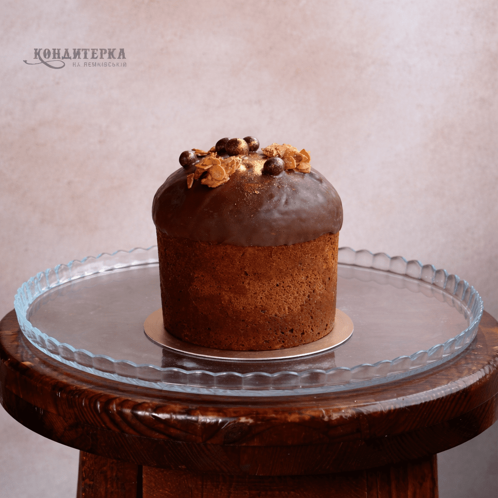 Ніжне тісто на основі молока, яєць, борошна, цедри лимона. Начинка шоколадна паста.Декор чорний шоколад, харчовий глітер, мигдальні чіпси.
