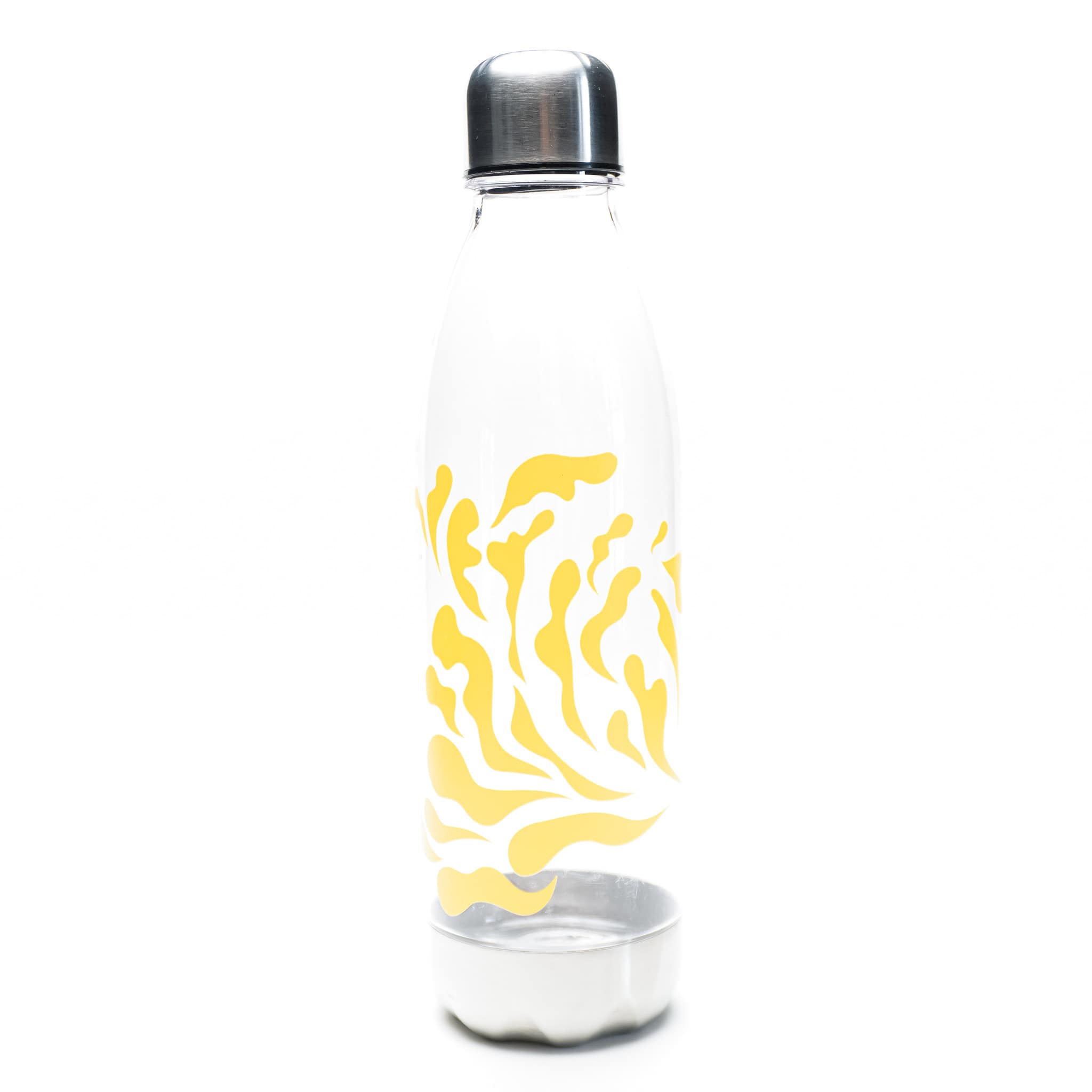 Пляшка для напоїв виготовлена ​​з Tritan™, що не містить BPA. Основа та кришка з нержавіючої сталі. Основний матеріал: ПЕТ. Ємність: 600 мл Не підходить для газованих напоїв. Герметичний.