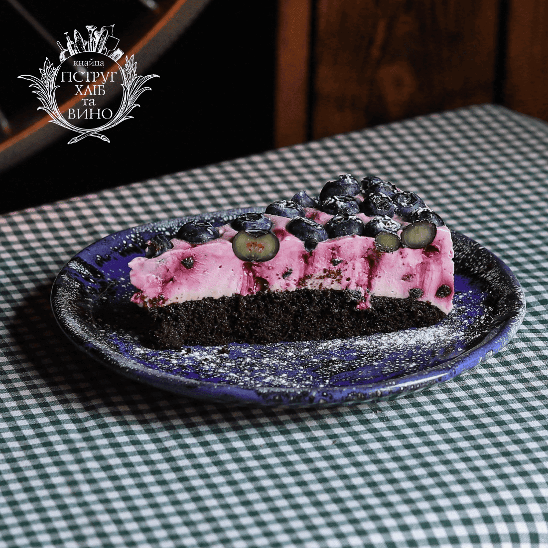 Чорничний сирний пляцок на шоколадному бісквіті